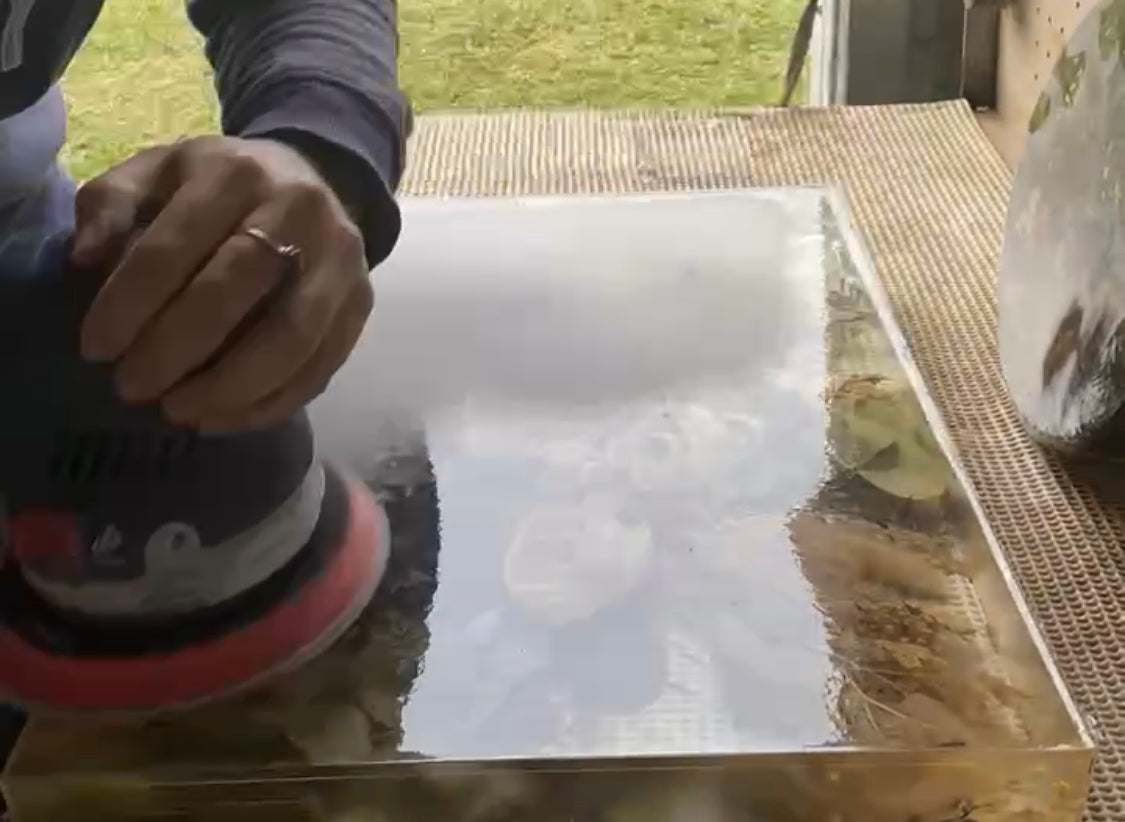 The resin is the mixed and poured in several stages to ensure you get the 3D effect. Once the curing process has finished (this can take several days after the final pour), your piece is then sanded and polished to a glass like finish.
