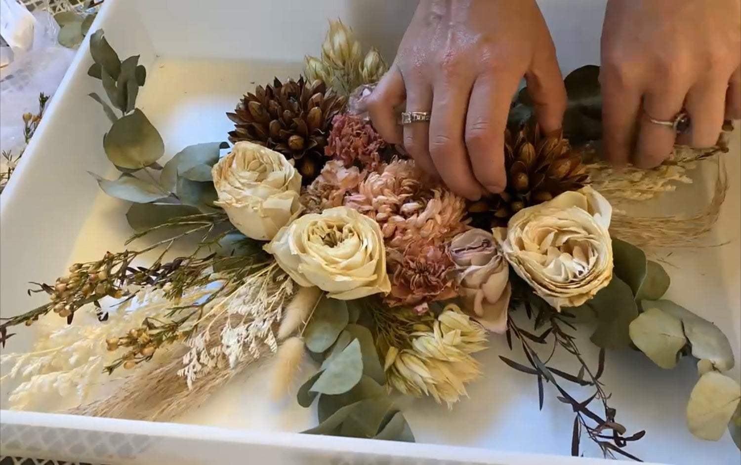 Once the drying is complete we arrange your flowers into your specified shape mould. If you are purchasing our Square, Round or Rectangle Botanical Inclusion Keepsake you will be sent a picture of our arrangement to ensure you are happy before the resin is poured.