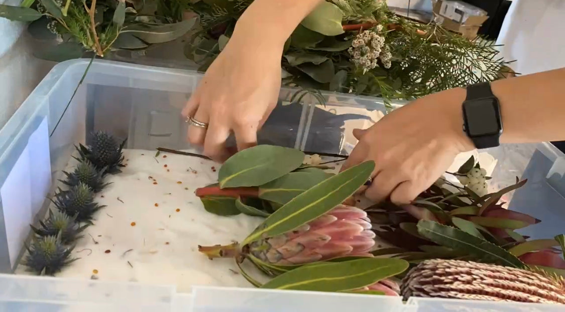 Flower preservation starts with the drying process. Drying flowers and foliage in a fine silica sand to withdraw all the moisture. The shapes of the flowers and foliage remain the same, some "shrinkage" can occur. Colours are mostly retained however, colours will slightly vary from the original in the drying process as they can fade & darken dependant on the flowers and foliage. Some flowers can also become translucent in the resin process. Drying can take up to four plus weeks depending on the type of flowers.