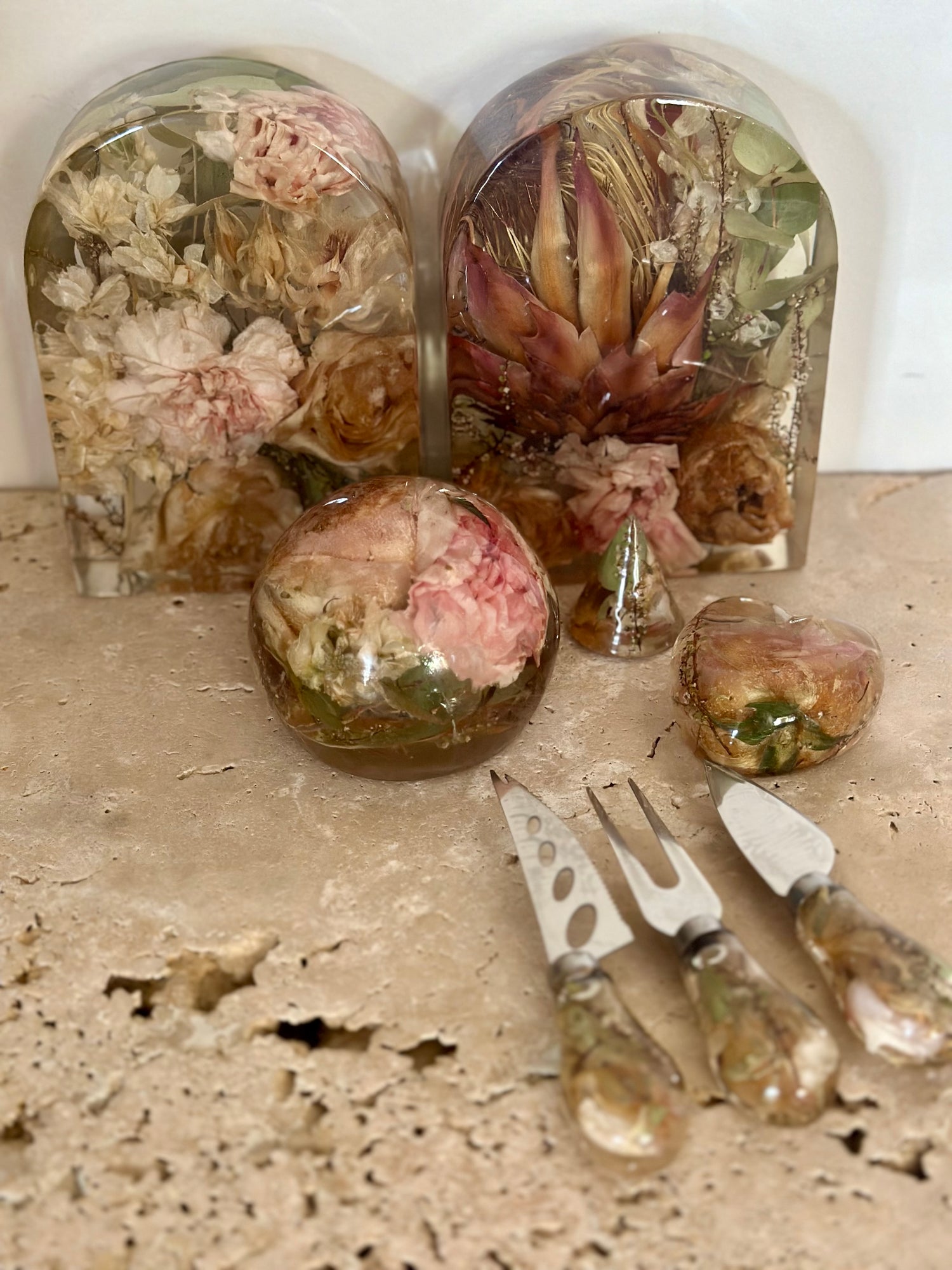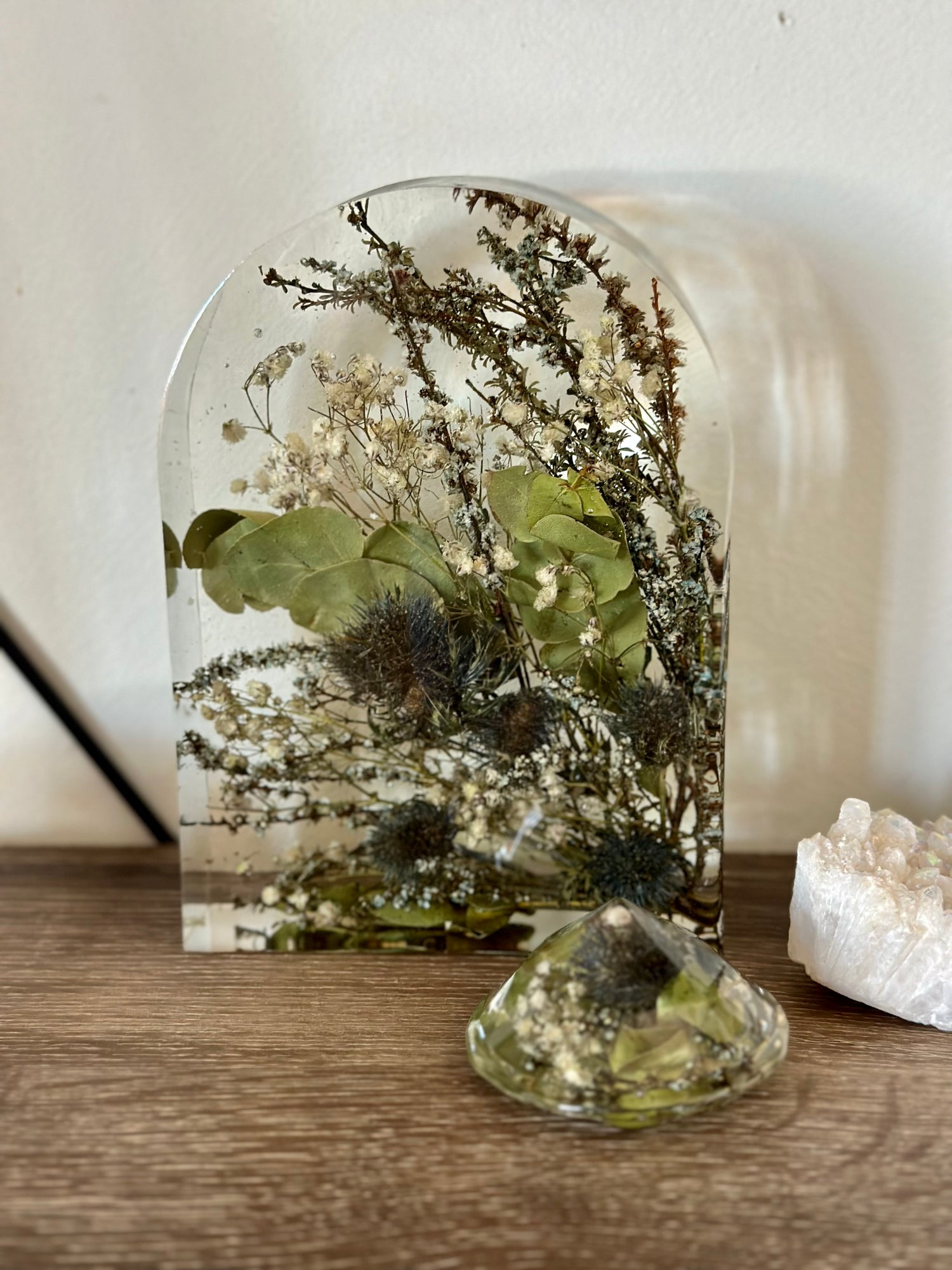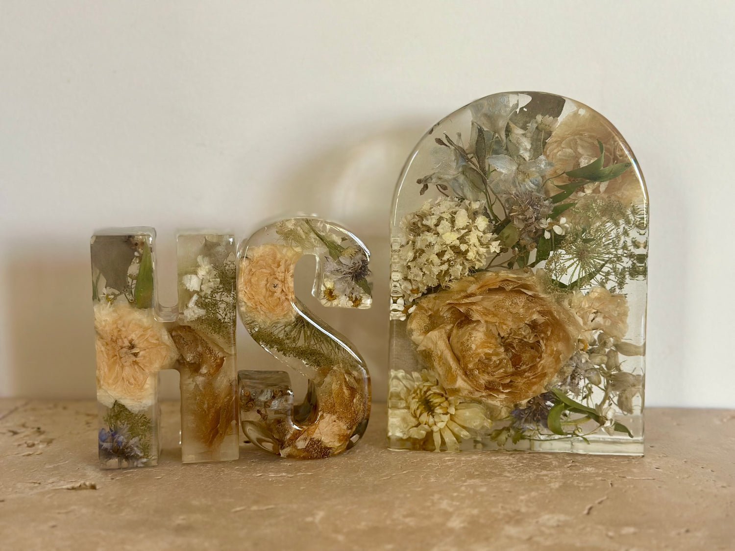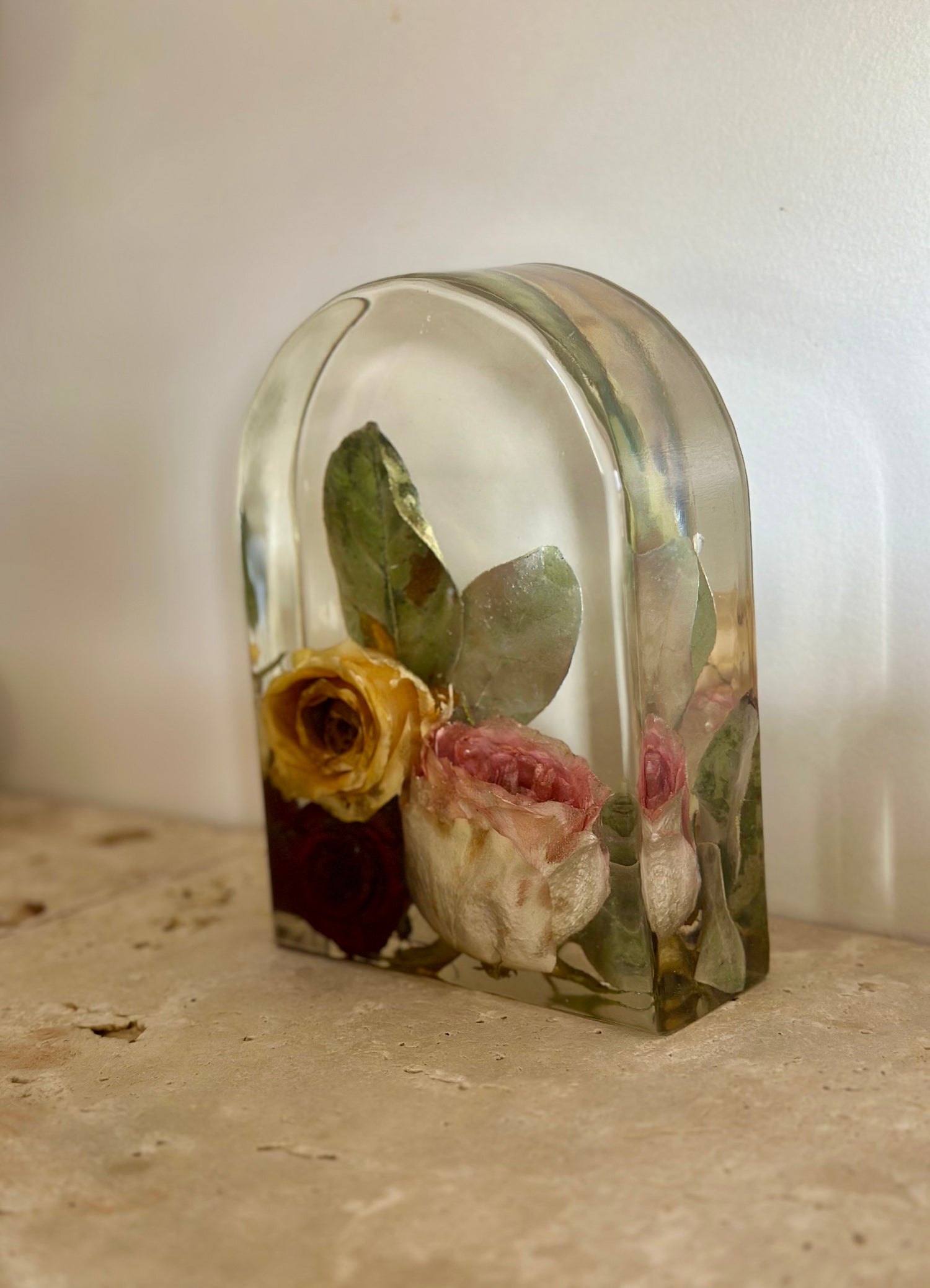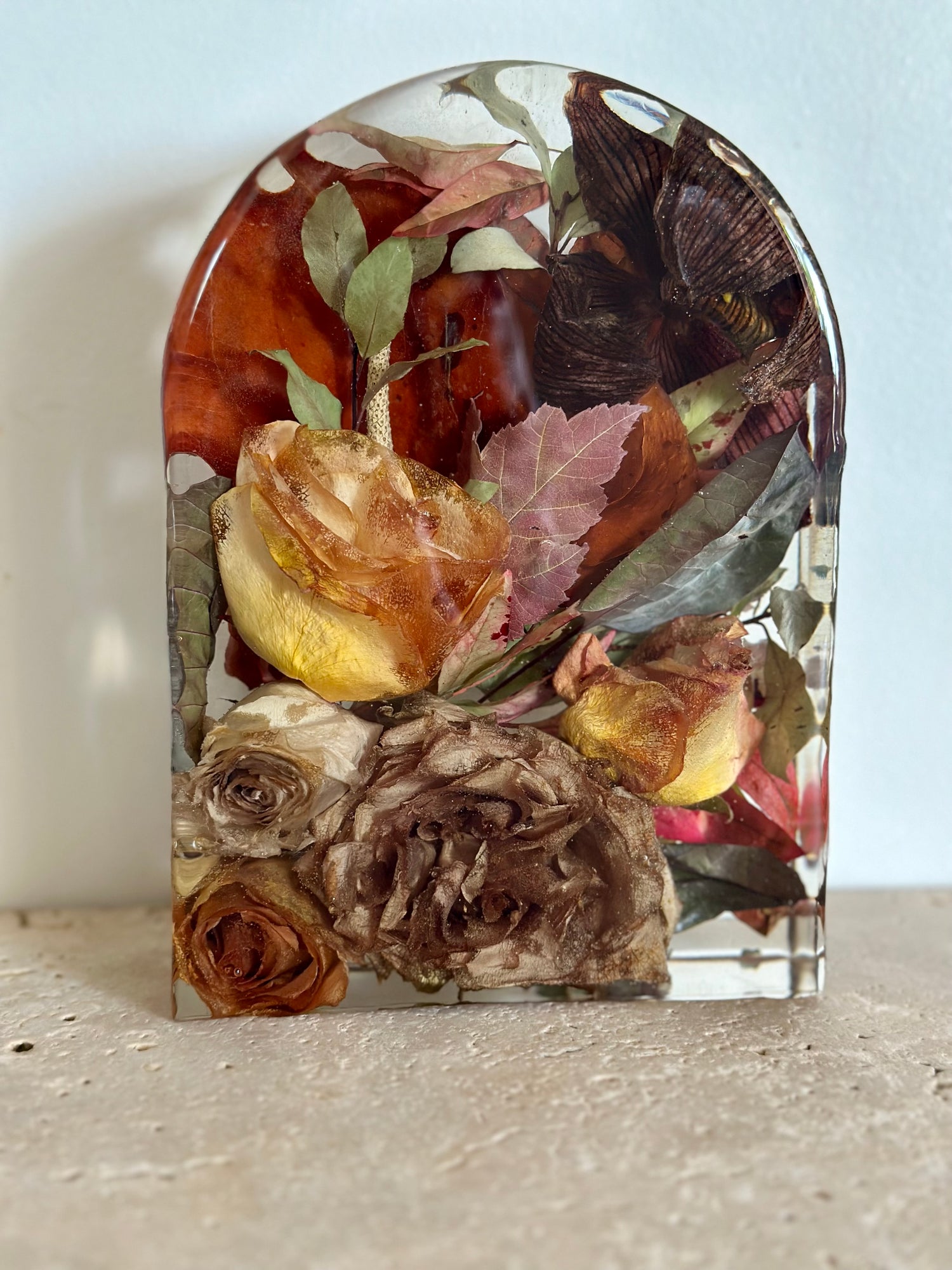 These original Eclectic Creative Designs Arch Flower Preservations are made with the highest quality decorative resin art and are perfect to turn your special occasion flowers in a timeless keepsake. Whether it be a wedding bouquet, birthday flowers, funeral flowers, they will be cherished displayed on your mantle piece, bedside table or on a shelf.