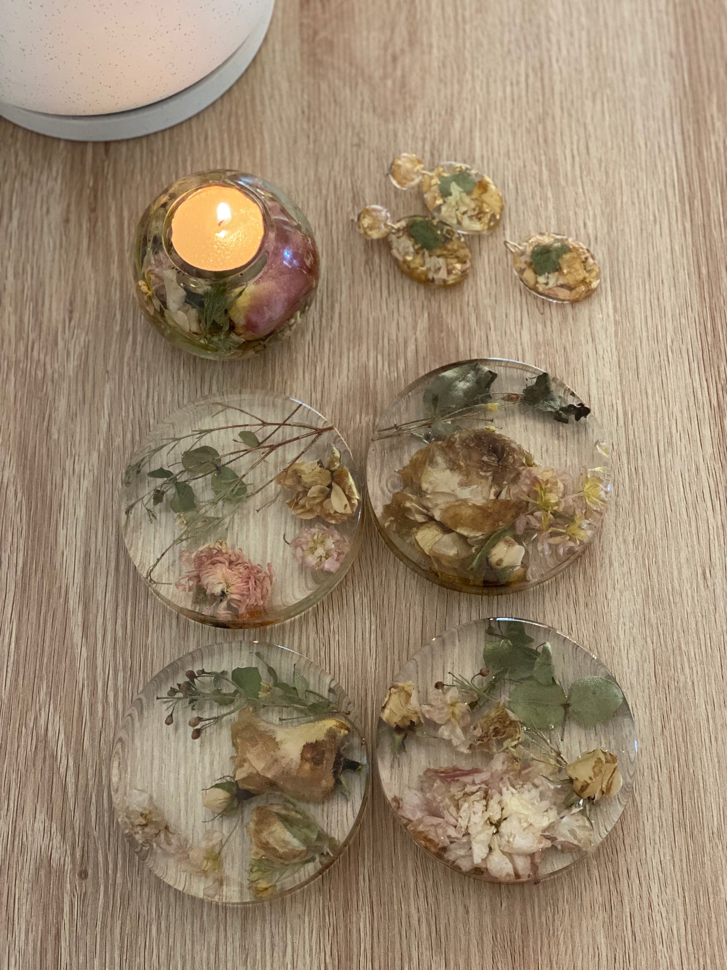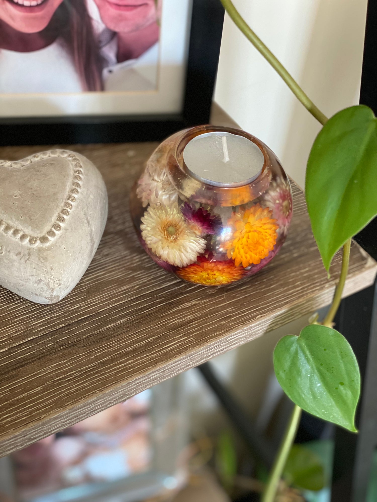 These original Eclectic Creative Designs Candle Holder Flower Preservations are made with the highest quality decorative resin art and are perfect to turn your special occasion flowers in a timeless keepsake. Whether it be a wedding bouquet, birthday flowers, funeral flowers, they will be cherished displayed on your mantle piece, bedside table or on a shelf.