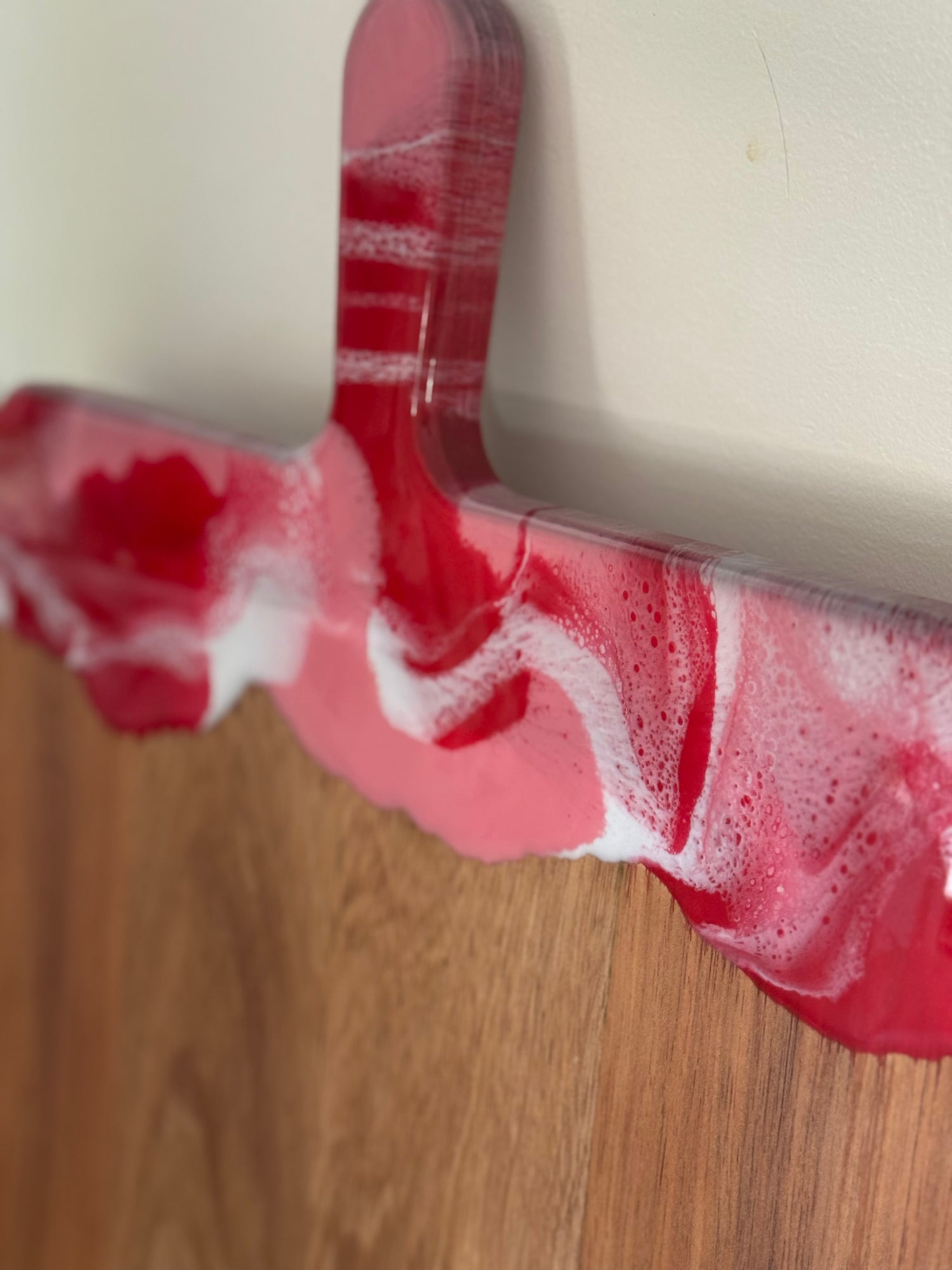 This original Eclectic Creative Designs serving board/cheese board is sustainably made from Tasmanian Oall right here in Australia and is covered with the highest quality decorative resin art on the handle. This one of a kind serving board/cheese board can be used for serving cheese or other foods and creates a unique way to serve food.