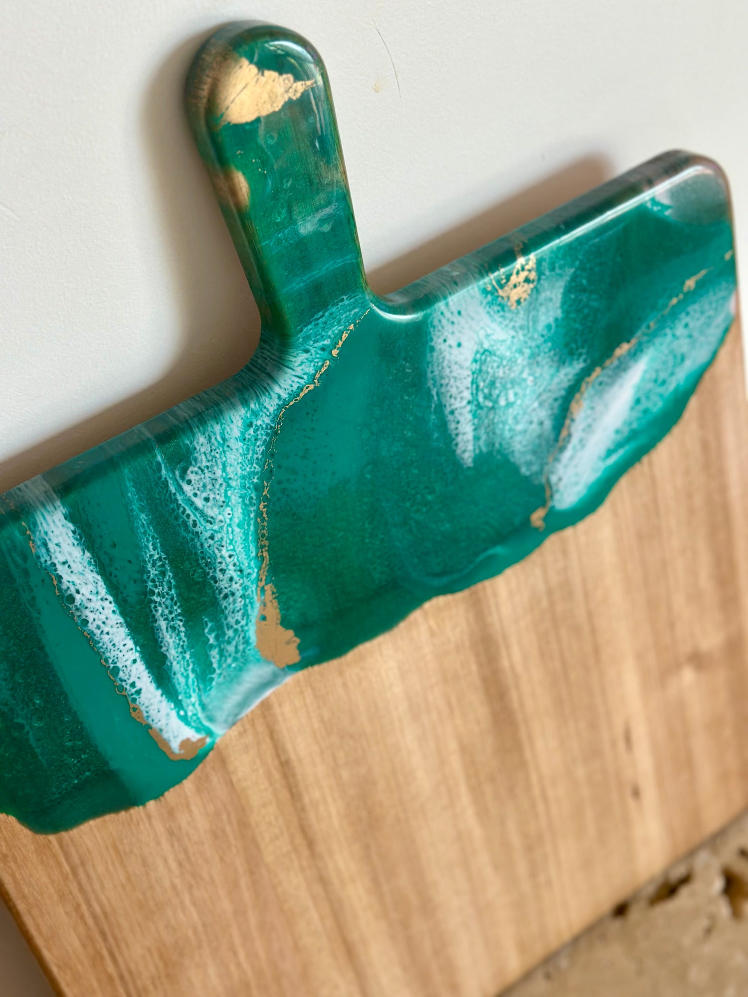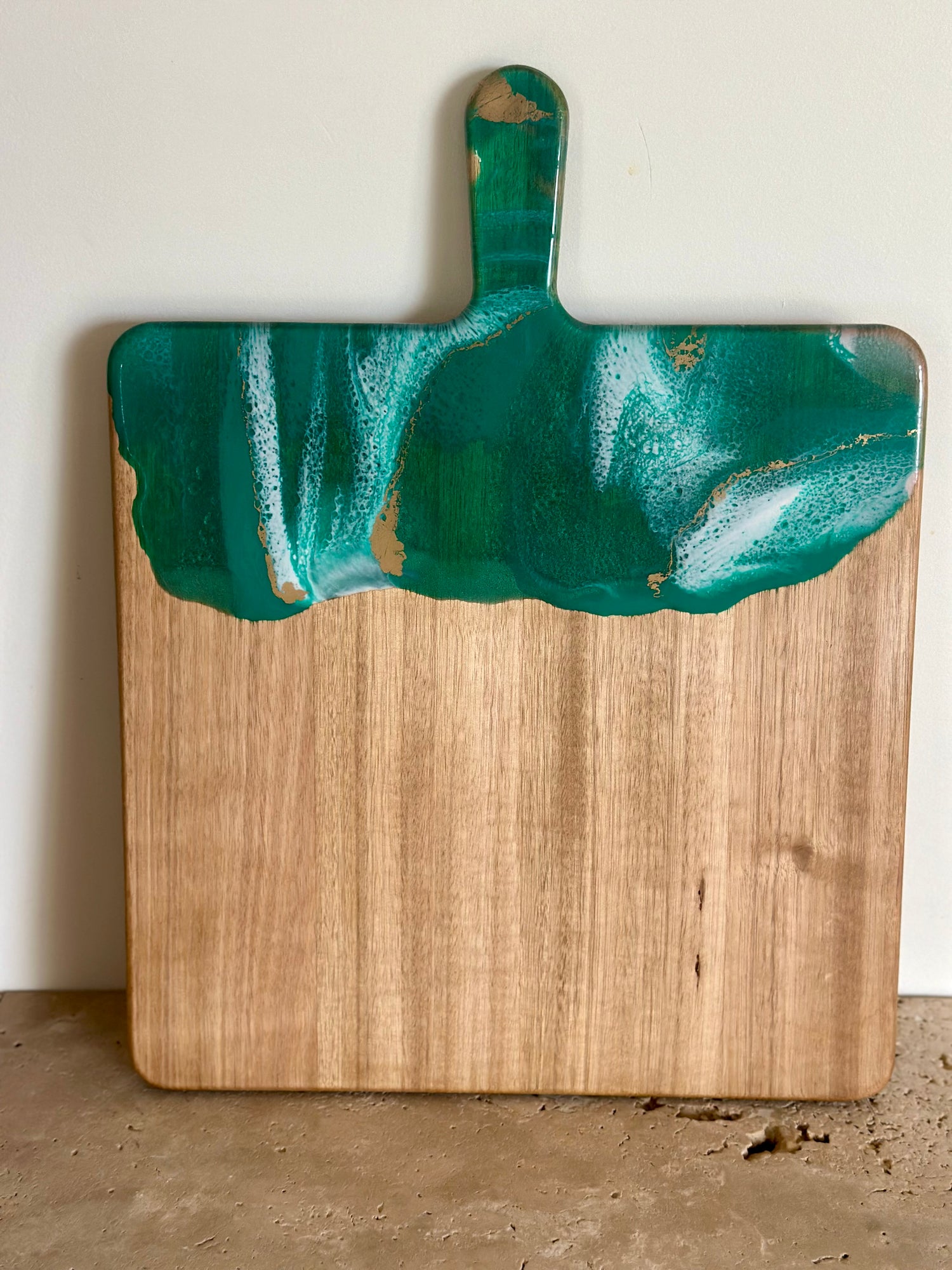 This original Eclectic Creative Designs serving board/cheese board is sustainably made from Tasmanian Oak right here in Australia and is covered with the highest quality decorative resin art on the handle. This one of a kind serving board/cheese board can be used for serving cheese or other foods and creates a unique way to serve food.